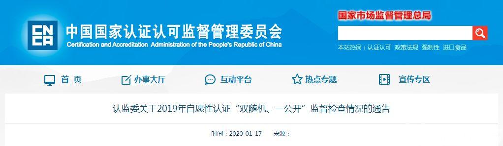 認(rèn)監(jiān)委關(guān)于2019年自愿性認(rèn)證“雙隨機(jī)、一公開”監(jiān)督檢查情況的通告