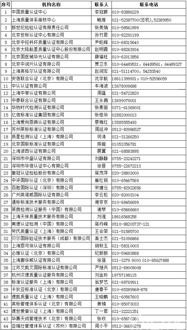 四、中國境內可以開展醫療器械管理體系(ISO13485)認證的機構名錄