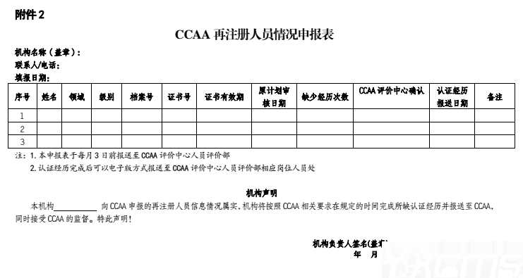 2.《CCAA 再注冊人員情況申報表》